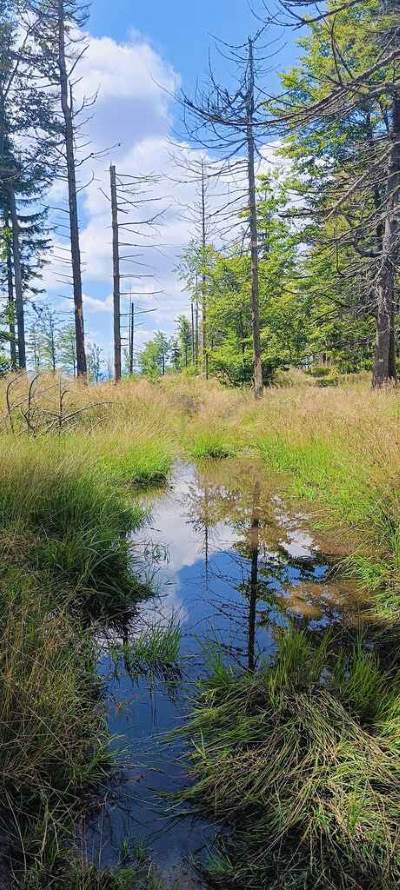 Nie szłam jednak do schroniska, bo spontanicznie ze szczytu pokierowałam się żółtym szlakiem (nie ma potrzeby też wracać do mijanego czarnego łącznika z Szyndzielmi) na Błatnią.