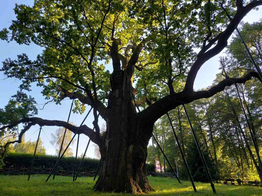Będąc w okolicy głupio ominąć Króla Drzew w Zagnańsku. Dąb Bartek dumnie rozpościera w trzy strony świata 8 swoich potężnych konarów. Podpiera je 15 metalowych podpór. Drzewo ma podobno 700 lat.