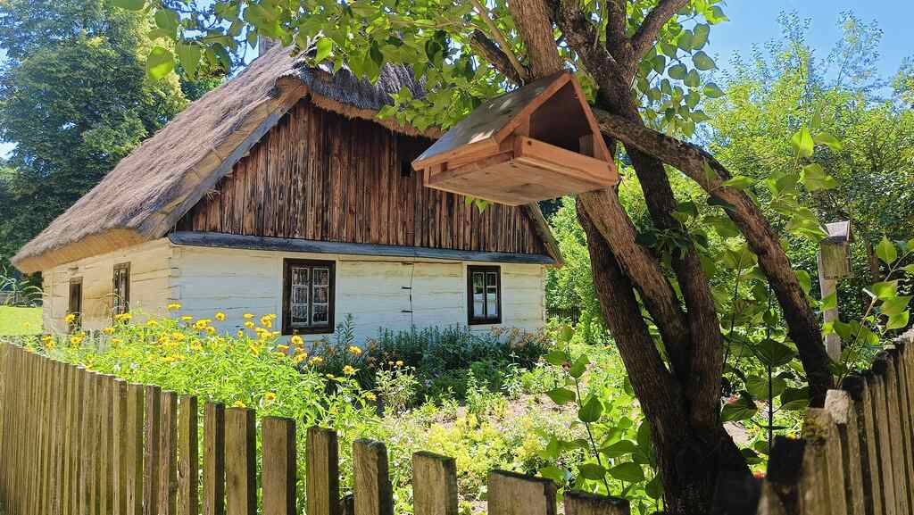 Zagrody, bielone chałupy, domostwa od biedniejszych po zamożniejsze. W jednym z nich są też zwierzęta. Zwrócicie uwagę na drewniany kościółek z osobną dzwonnicą. Kiedy byliśmy, trwały akurat przygotowania do ślubu. Miniecie też kilka wiatraków – bez łopat (śmigów) niestety oraz uroczy dworek. Ciekawym budynkiem jest niewielka hala, pod którą stoi najwięcej w kraju (około 40) SAM-ów, czyli tzw. samoróbek przypominających traktory lub inne pojazdy. Polak potrafi!