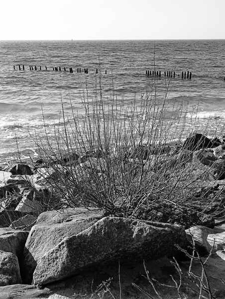 Wiatr wiał jak szalony. Zresztą ilekroć tam jestem to „pizga”. Chociaż w listopadzie fale z dużo większą siłą obijały się o brzeg obudowany kamieniami i metalowa kratą. To tu jest koniec lub początek Polski. Z faktami się nie dyskutuje, a napis na kupce kamieni nie kłamie.