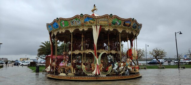 Miasteczko jest portowo – plażowe z uroczym deptakiem. Są tam piękne, zadbane budynki. Jest czysto. Co kawałeczek sklep z pamiątkami. Im bliżej morza, tym drożej. Przy porcie stoi koło młyńskie a z drugiej strony, przy parkingu „karuzela, karuzela na Bielanach co niedziela…”. Urocze, stylizowane na stare konie. W oddali są te podobno najpiękniejsze w okolicy plaże. Niestety deszczowa pogoda nie motywuje, by do nich podejść. Wieje lekko chłodny wiatr.