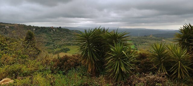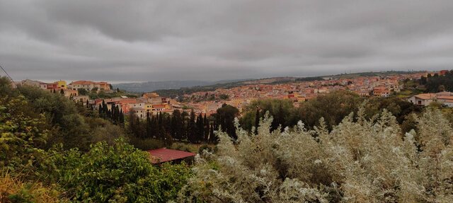 Natomiast zanim dotarliśmy do Sassari nie obyło się bez przygód. Dosłownie 5 minut wcześniej odjechał autobus z lotniska. Urocze 2h czekania na następny. Powolna kawa i croissant , w poczekalni lotniska, wypełniły w niewielkim stopniu lukę czasową. Natomiast już sam kurs do destynacji zajął może 40-50 minut, ciagnąc się przez zielone łąki, niewysokie pagóreczki po obu stronach autostrady. Czasem rzuciła nam się w oczy jakaś winnica lub zrujnowany, niedokończony dom. Poniej przykłady widoczków na Sardynii.
