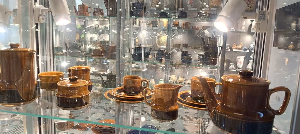 Można tu zobaczyć m.in.: zestawy stołowe i deserowe, kubki, filiżanki, kufle, wazony itd. itp.