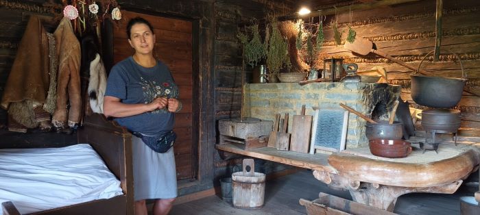 Znajdziecie tu np. narzędzia gospodarskie pana domu, przybory gospodyni jak np. maszynę do szycia (przepiękny Singer), żelazka, a także wąchamy różne gatunki ziół zbieranych przez gospodynie. Wrażenie robią lampy naftowe.