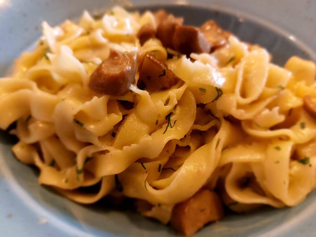 Na danie główne zamówiliśmy tagiatelle z borowikami (Roman) i krewetkami (ja).