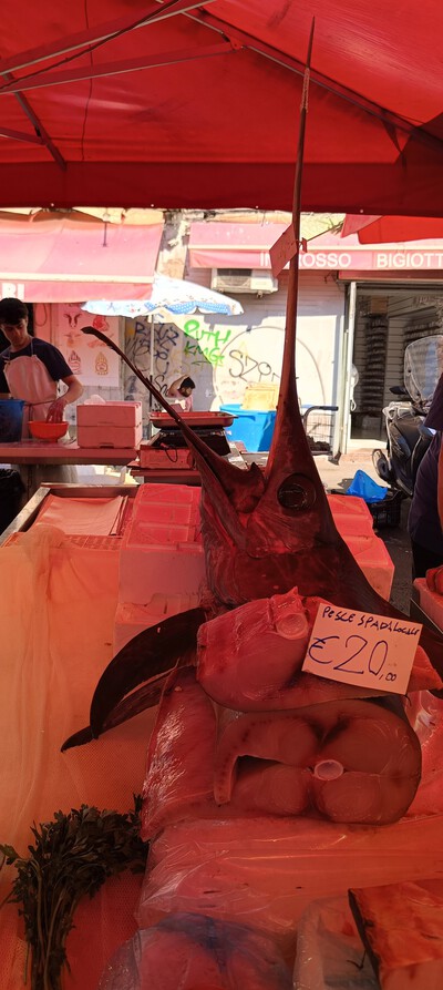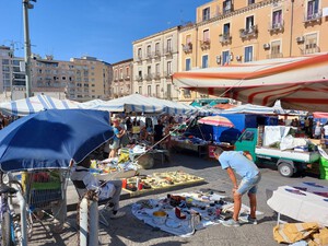Natomiast nas zachwycił targ w Katani. Każdy sprzedawca nawołuje, zaprasza, czasem częstuje kawałkiem melona, a cena za owoc 1 euro. „Prego, prego. SIniora, due Euro!!! „ – słychać co kawałek.