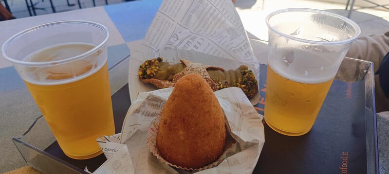 Zza przeszklonych chłodni zerkają apetyczne cannoli sycylijskie ( z kremem serowym) lub z wkładką pistacjową; puszysty zrolowamy kawałek biszkopta z kremem czekoladowym czy Arancine, czyli ciacho przypominające kształtem np. łezkę, tyle że pieczone i z różnym farszem. Albo takie coś nas woła: