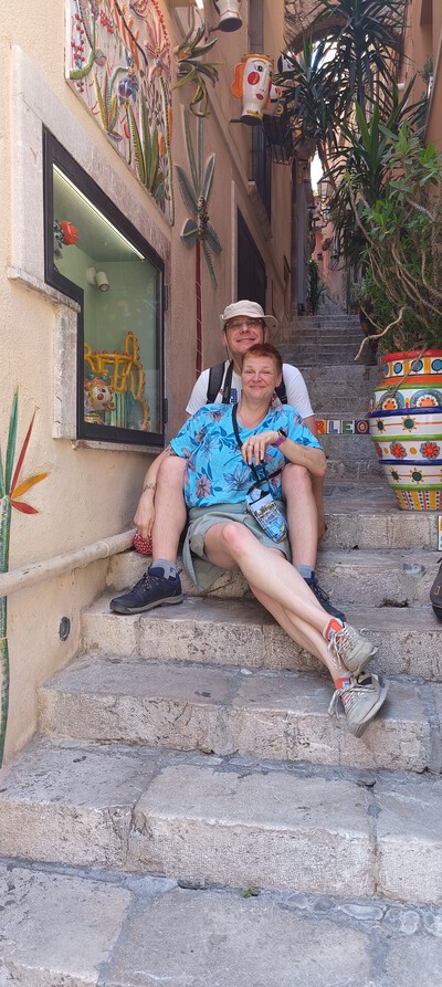 Tu, w przeciwieństwie do Katanii jest czysto, uroczo, klimatycznie. Zewsząd zerkają na nas przybite do ścian kolorowe talerze, uśmiechnięte słońca, księżyce, głowa z trzema nogami ( symbol Sycylii) lub stojące głowy – maski, wykorzystywane jako doniczki. Ściany także przyozdobiono malutkimi doniczkami, malunkami. Drogi są wąskie, kręte, mocno z górki.