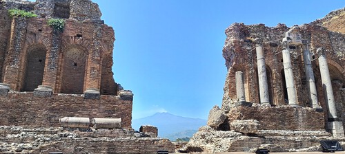 Z Taorminy rzeczywiście najpiękniej widać dymiącą Etnę. Możecie ją sfotografować z amfiteatru lub punktu widokowego w parku miejskim – ogrodach miejskich.