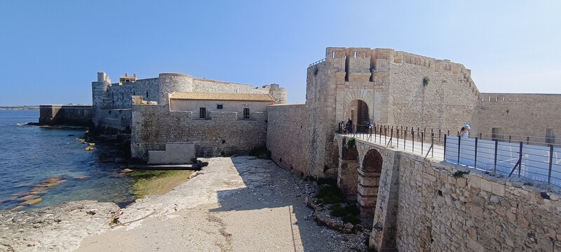 Obok twierdzy stoi postawny mężczyzna bez głowy, ale ze zgrabnymi pośladkami. To pomnik Ikara, którego za nogę łapał ojciec. Ten subtelny fakt jest tu symbolicznie pokazany. Dedal pochodził właśnie z Syrakuz.